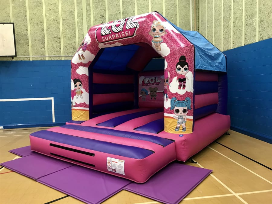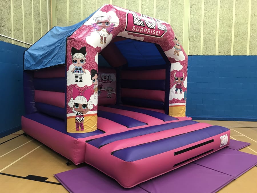 13ftx16ft Lol Suprise themed bouncy castle. Comes with a built in rain cover.