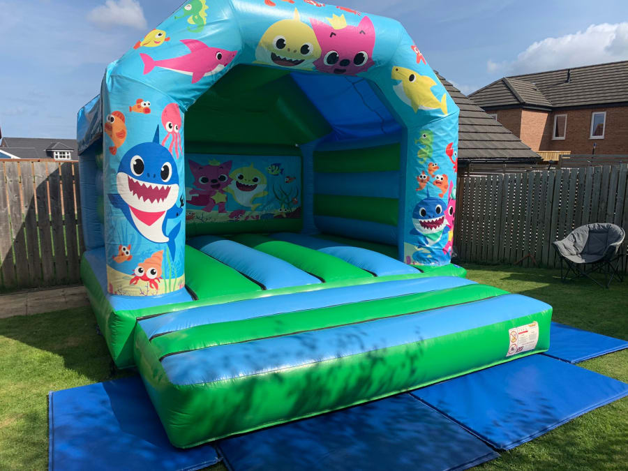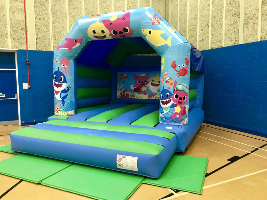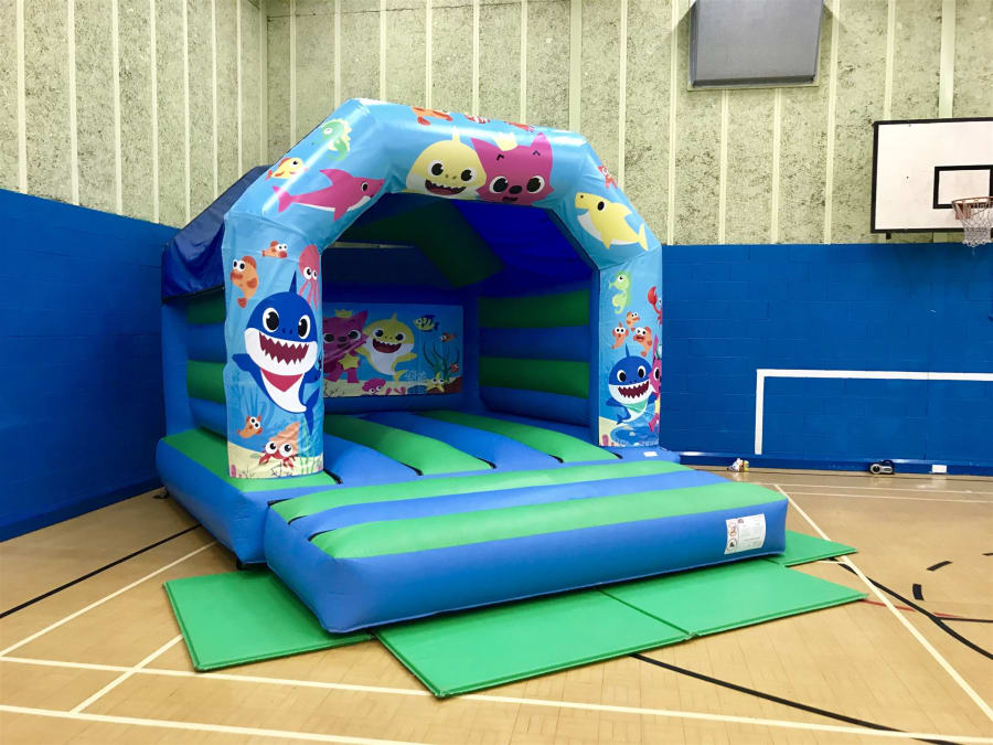 13ftx16ft Baby Shark themed bouncy castle. Comes with a built in rain cover.