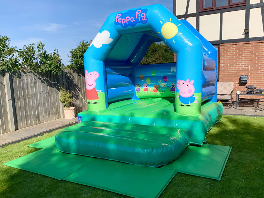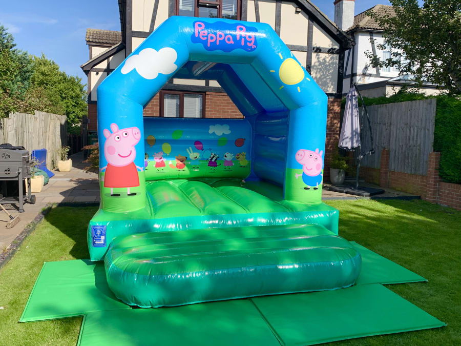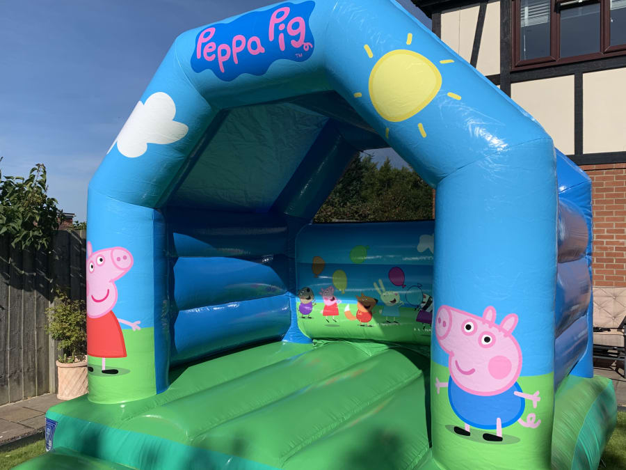 10ftx12ft Peppa Pig themed bouncy castle. Comes with a built in rain cover.