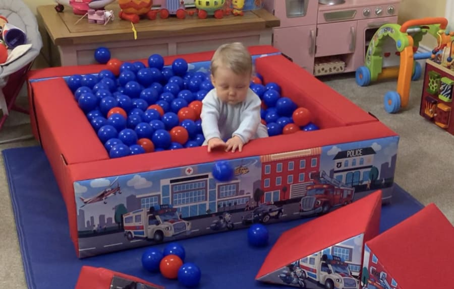 This is a soft play ball pool which velcro's together. this means it does not need a noisy blower to inflate it. Perfect for homes/small rooms.