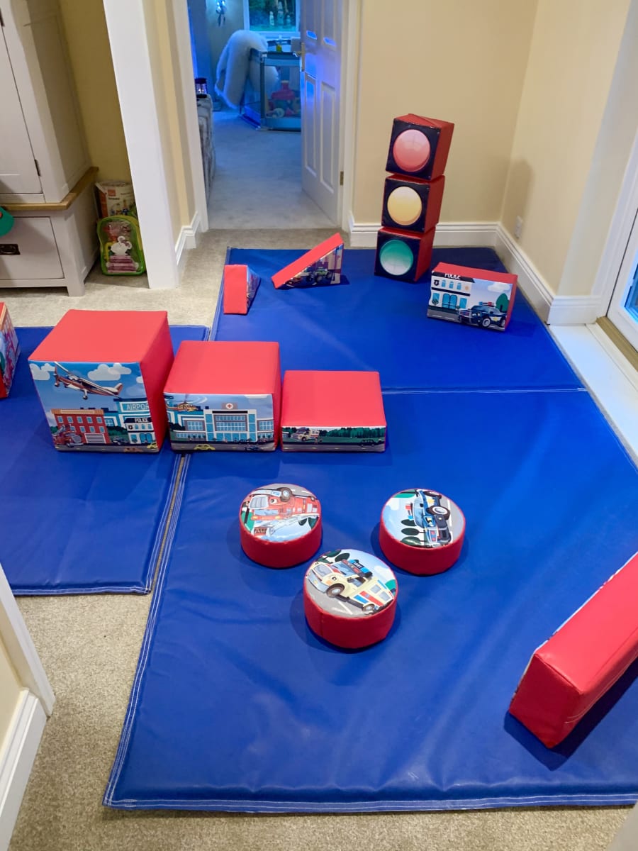 This Traffic Themed soft play set consists of 18 soft play pieces and a 10ftx10ft matted area.