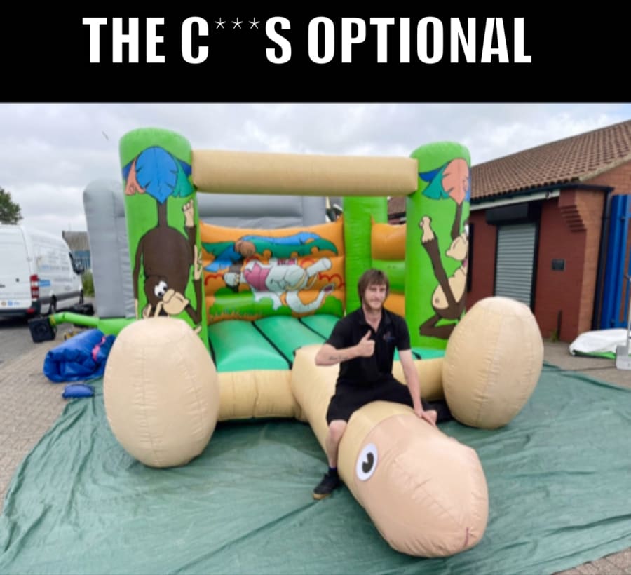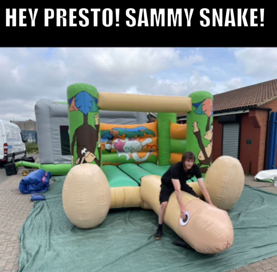 Due to Sammy's unique design he cannot be safety tested and insured to be used as a normal bouncy castle.
