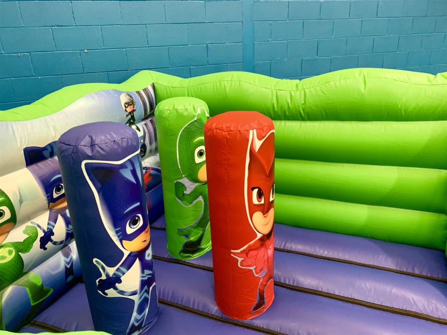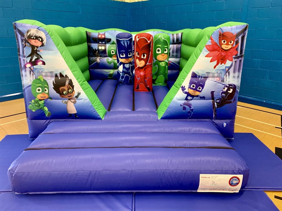 11ftx15ft PJM themed low height Bouncy castle. Comes with Owlette, Catboy and Gecko bashers. Perfect for indoor parties. Can be hired on its own or as part of our Masks packages.