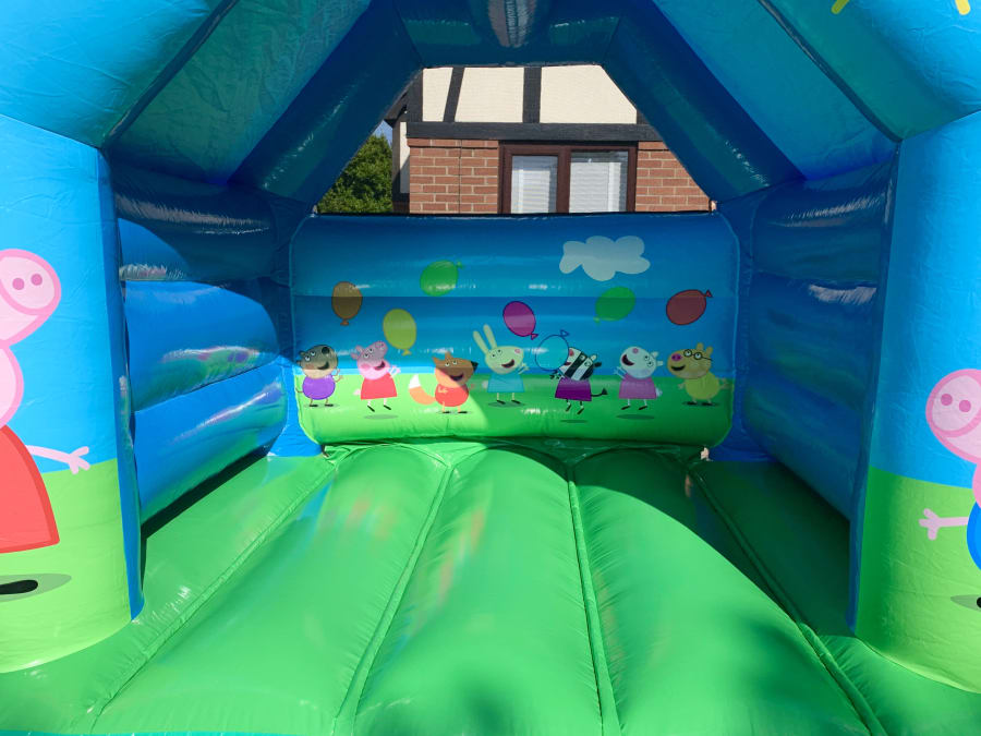 10ftx12ft Peppa Pig themed bouncy castle. Comes with a built in rain cover.