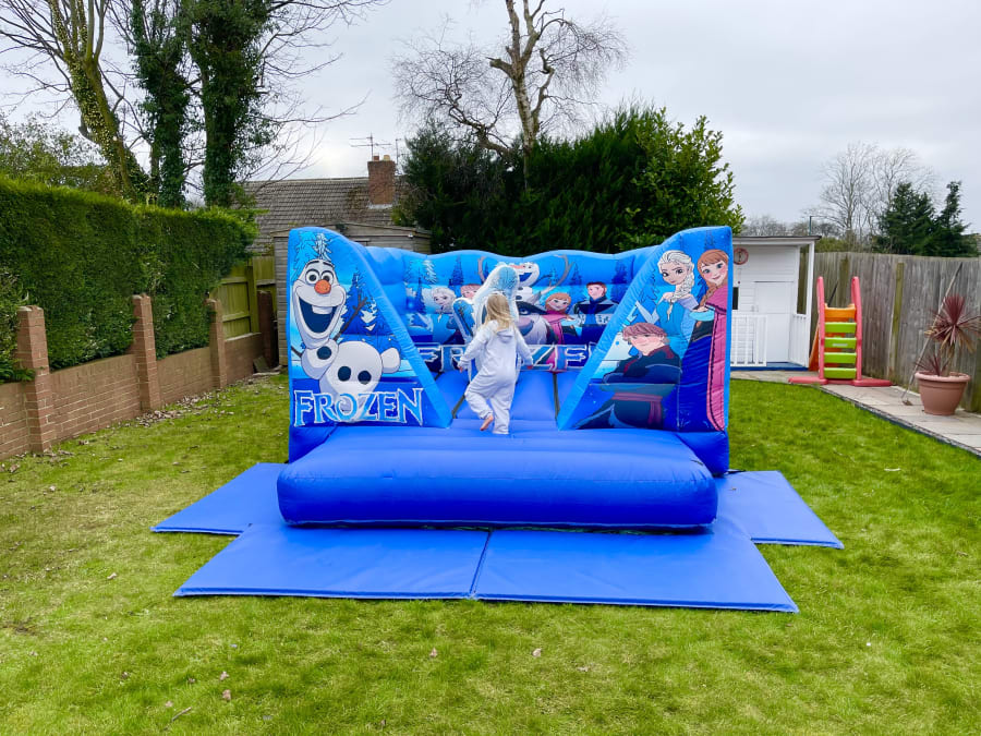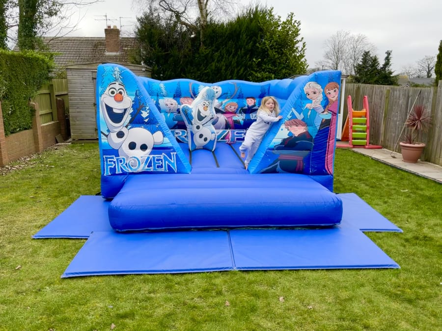 11ft x 15ft Frozen themed low height Bouncy Castle. Comes with an Olaf basher. Perfect for indoor parties.