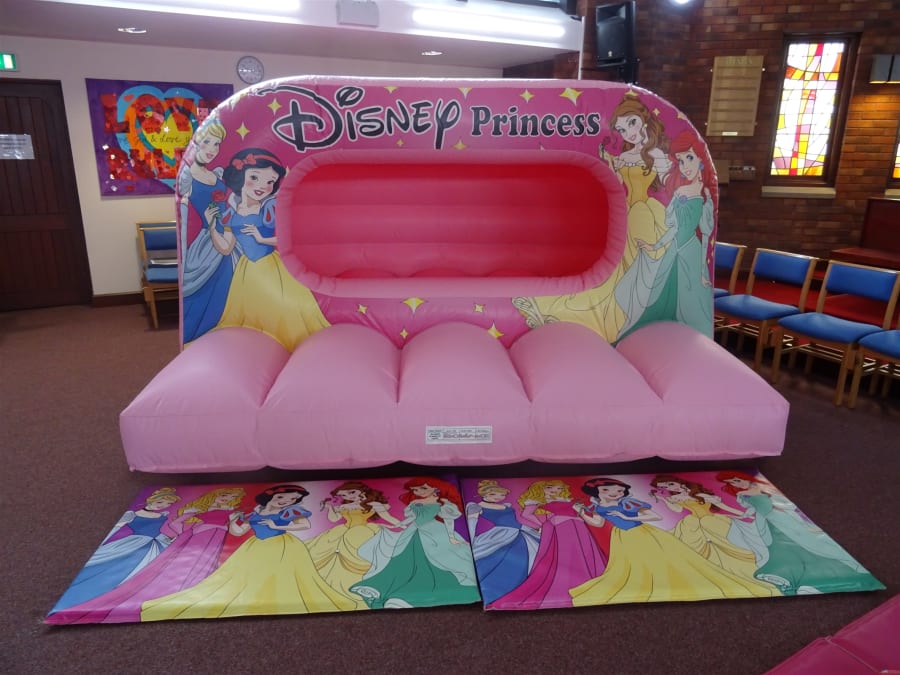 Small Princess bouncy castle designed for younger children up to the age of 6. Comes with a built in rain cover.