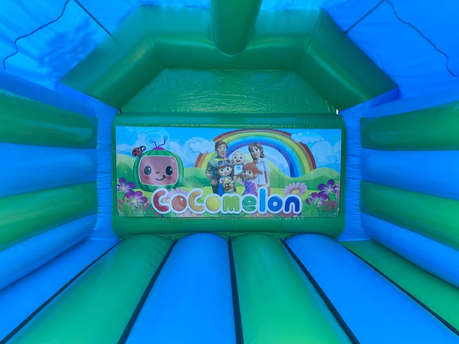13ftx16ft Cocomelon themed bouncy castle. Comes with a built in rain cover.