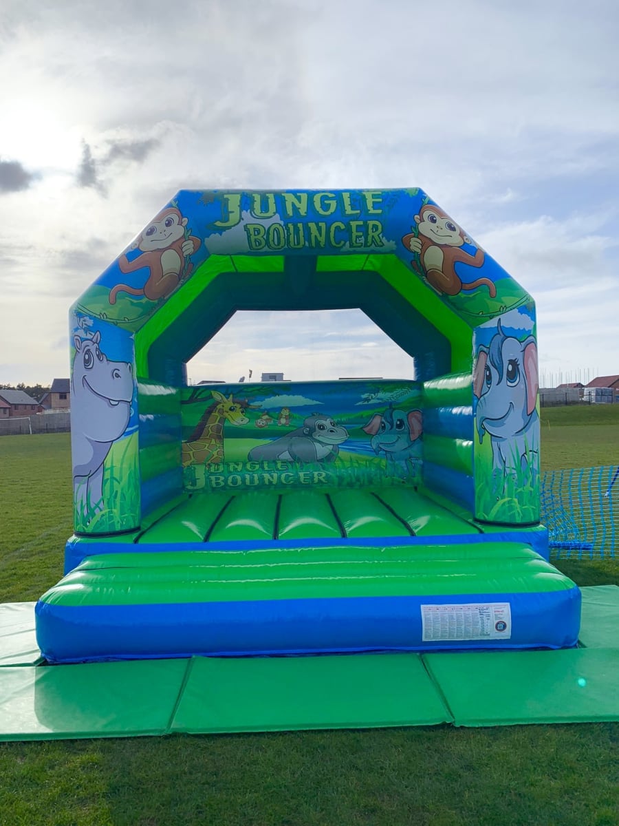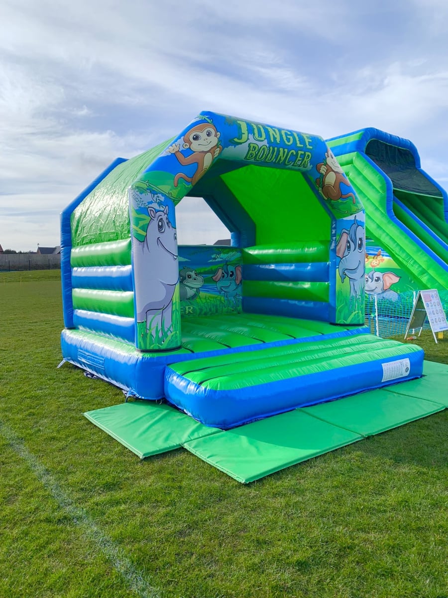 A larger than average bouncy castle. Can be hired as a package with our matching jungle themed slide.