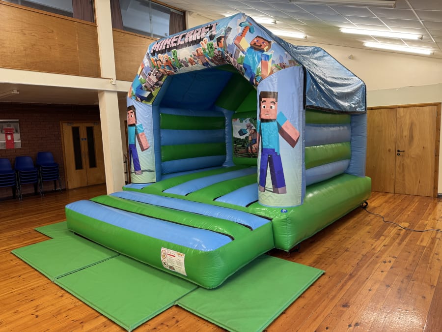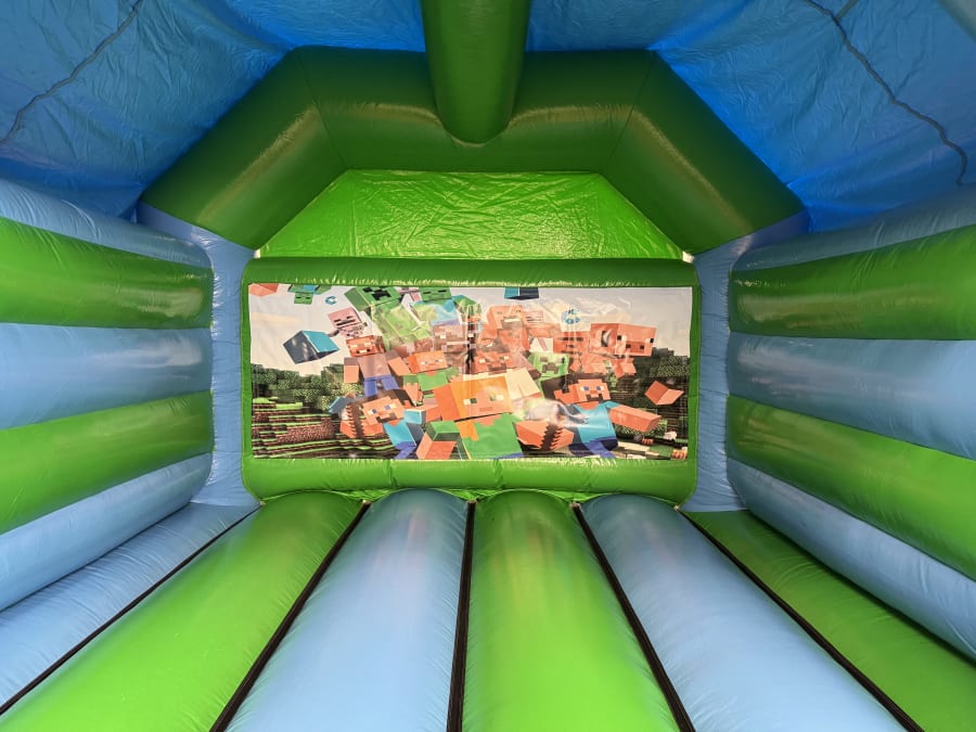 13ftx16ft Minecraft themed bouncy castle. Comes with a built in rain cover.