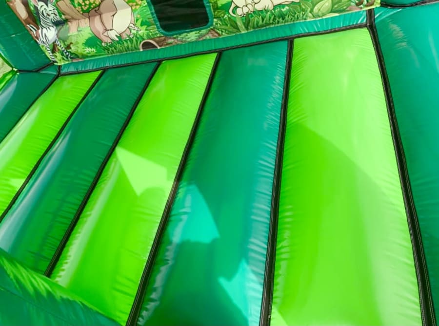 Inflatables MUST NOT be switched off in the rain. This will result in the water soaking through the stitching and filling up the inside of the inflatable with water.