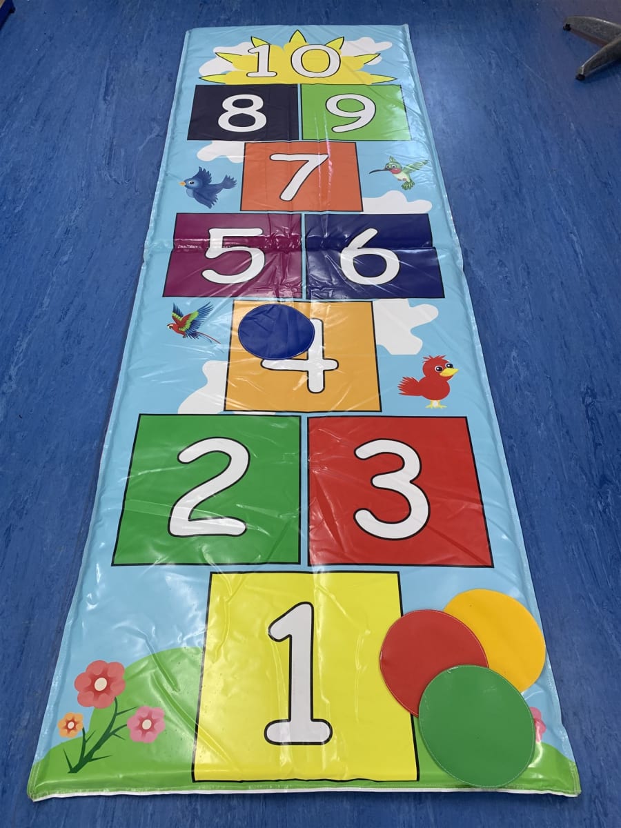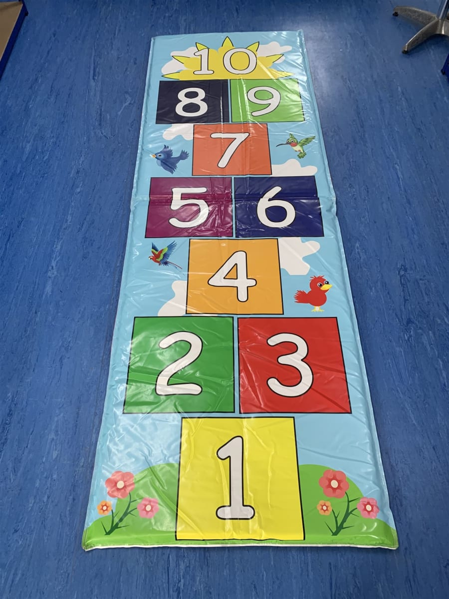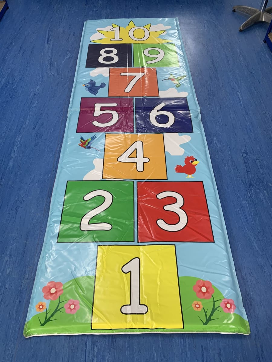 For younger children simply hopping across the single versus double squares can provide hours of fun.
