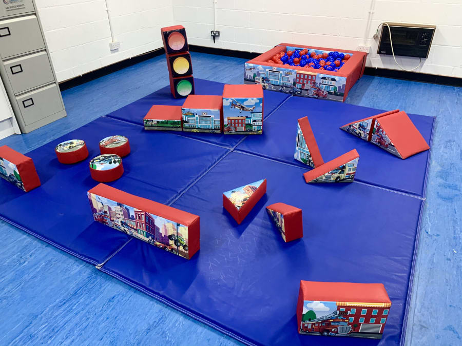 This Traffic Themed soft play set consists of 18 soft play pieces and a 10ftx10ft matted area.