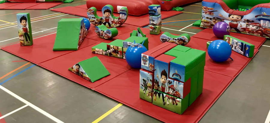 The Paw Patrol soft play set consists of a 10ftx15ft matted area and includes: