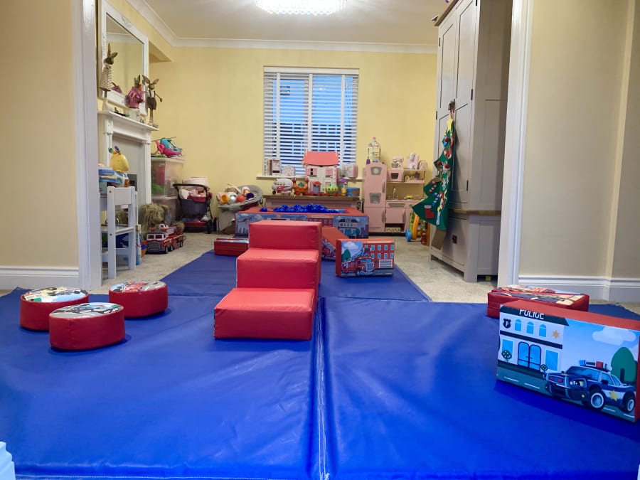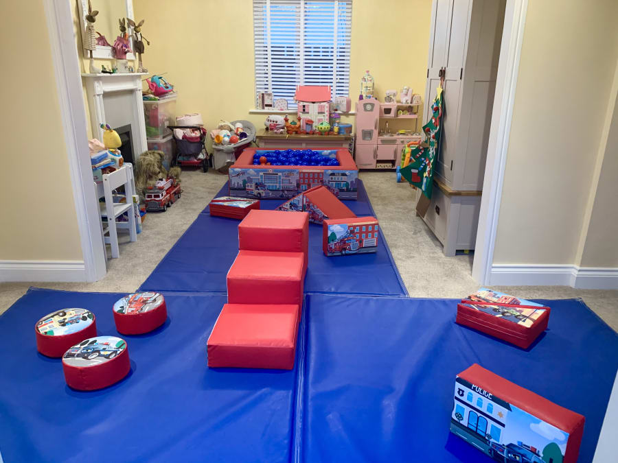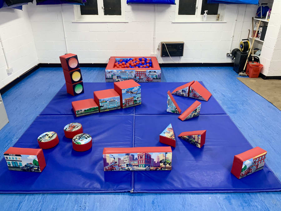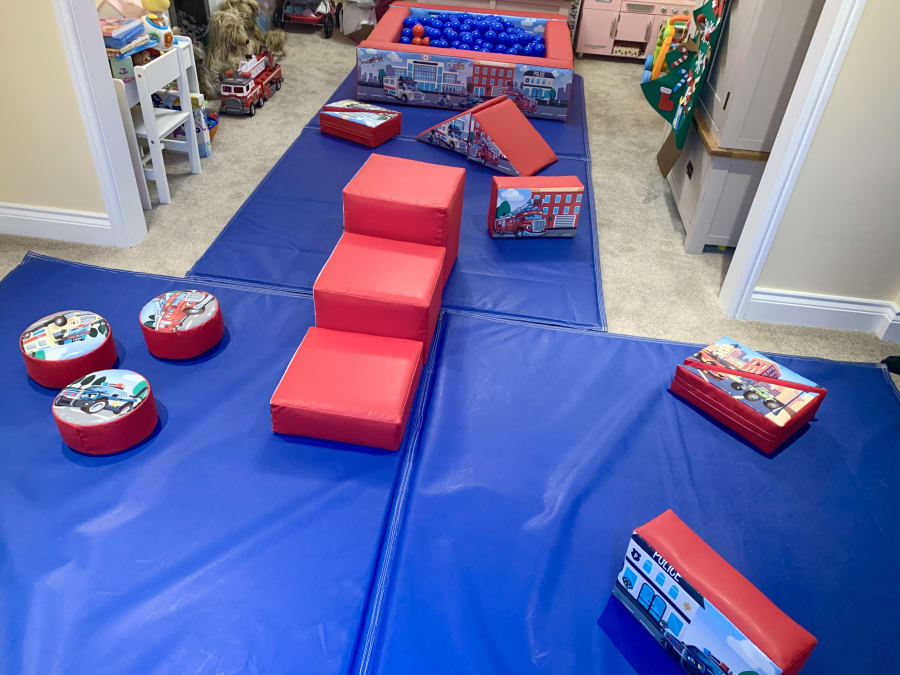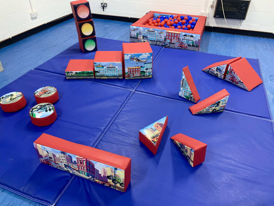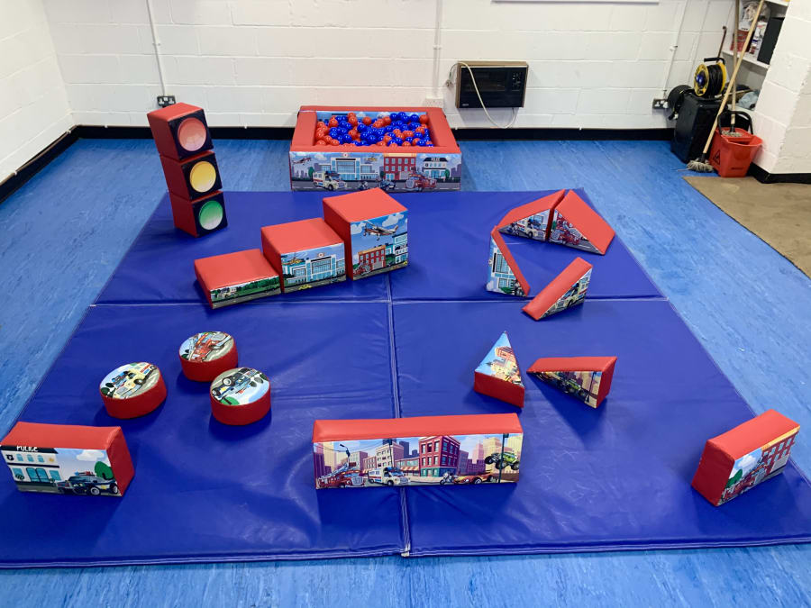 a 10ftx10ft matted area with an 18 piece soft play kit